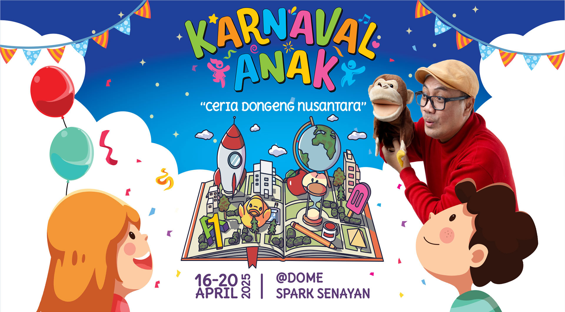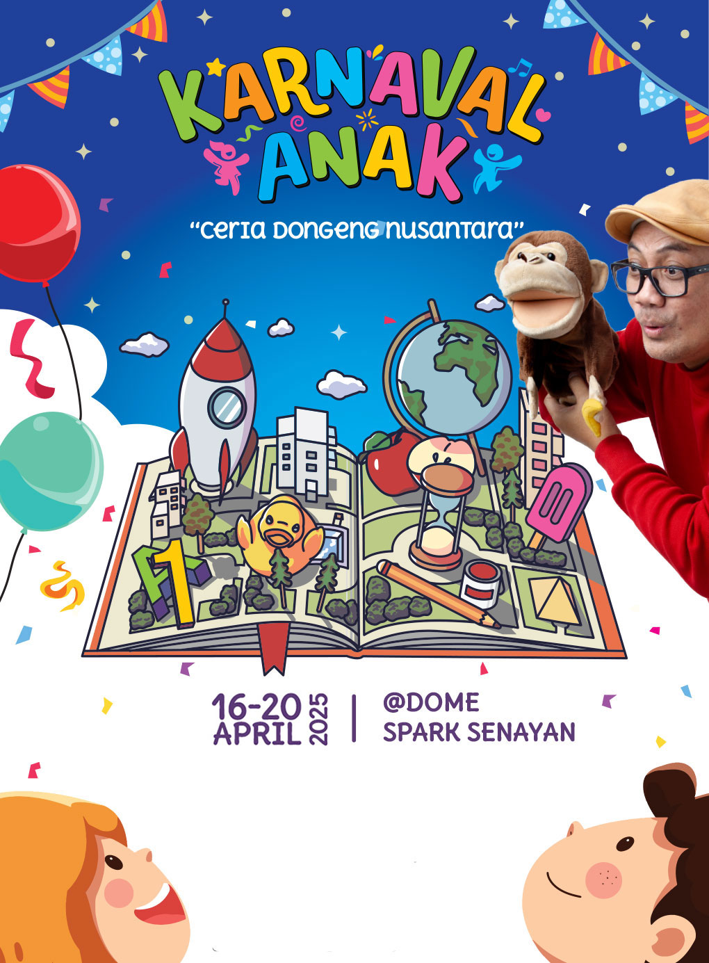 Acara “KARNAVAL ANAK” pertama dengan tema "Ceria Dongeng Nusantara" dipilih untuk menghidupkan kembali mendongeng sebagai sarana edukasi yang menyenangkan.